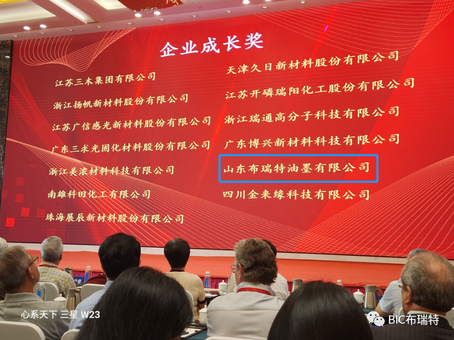 在此次大会,山东布瑞特油墨有限公司获得了中国感光学会辐射固化专业委员会成立三十周年表彰先进 “科技创新奖”、“企业进步奖” 的两项荣誉。