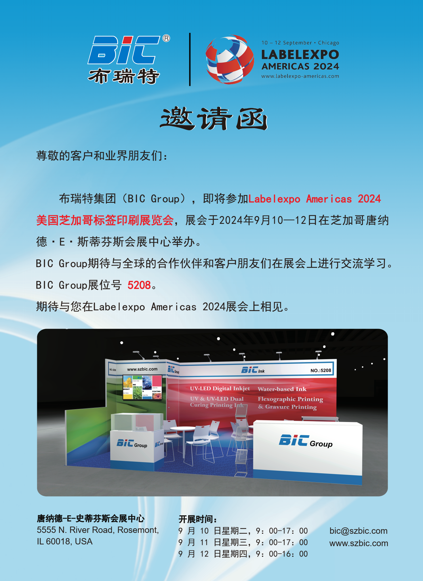邀请函 | 布瑞特集团(BIC Group)-- Labelexpo Americas 2024美国芝加哥标签印刷展览会