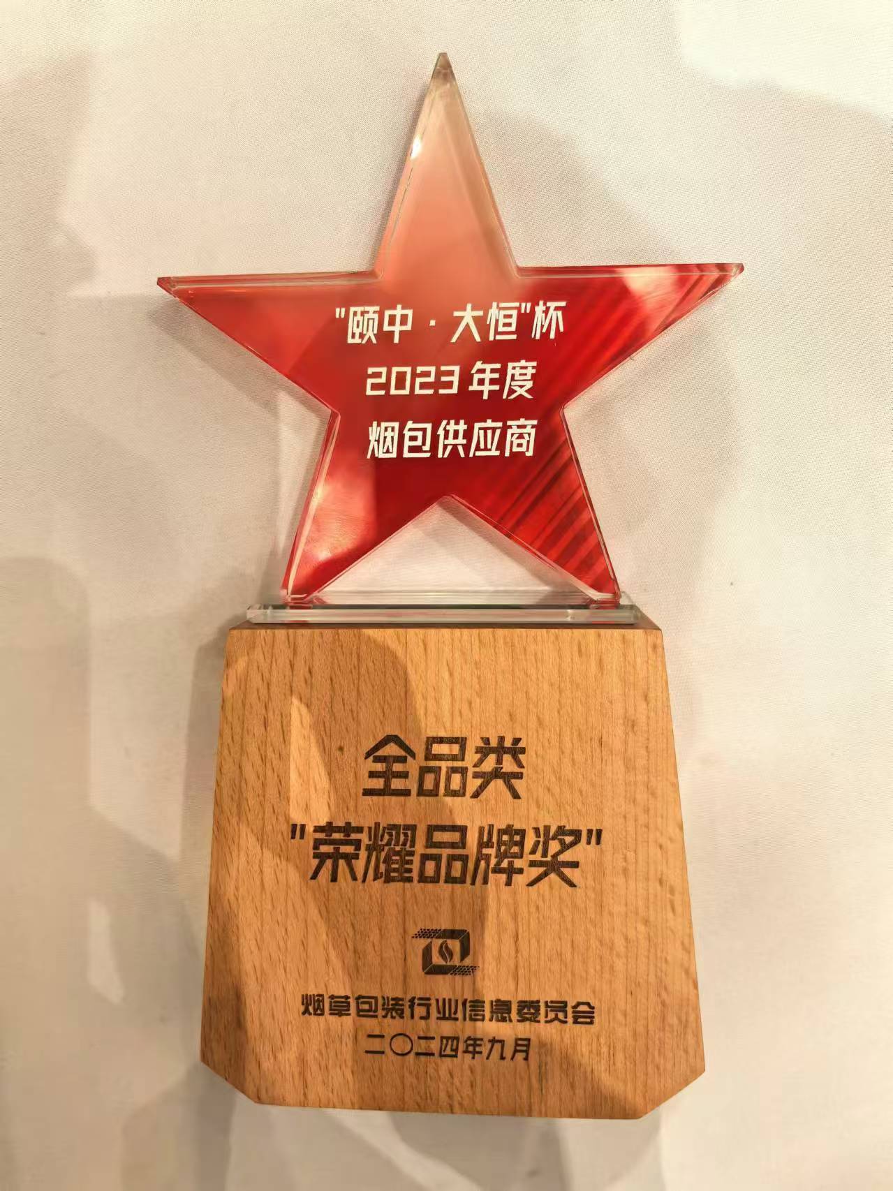 热烈祝贺山东布瑞特荣获2023年度烟包供应商全品类“荣耀品牌奖”