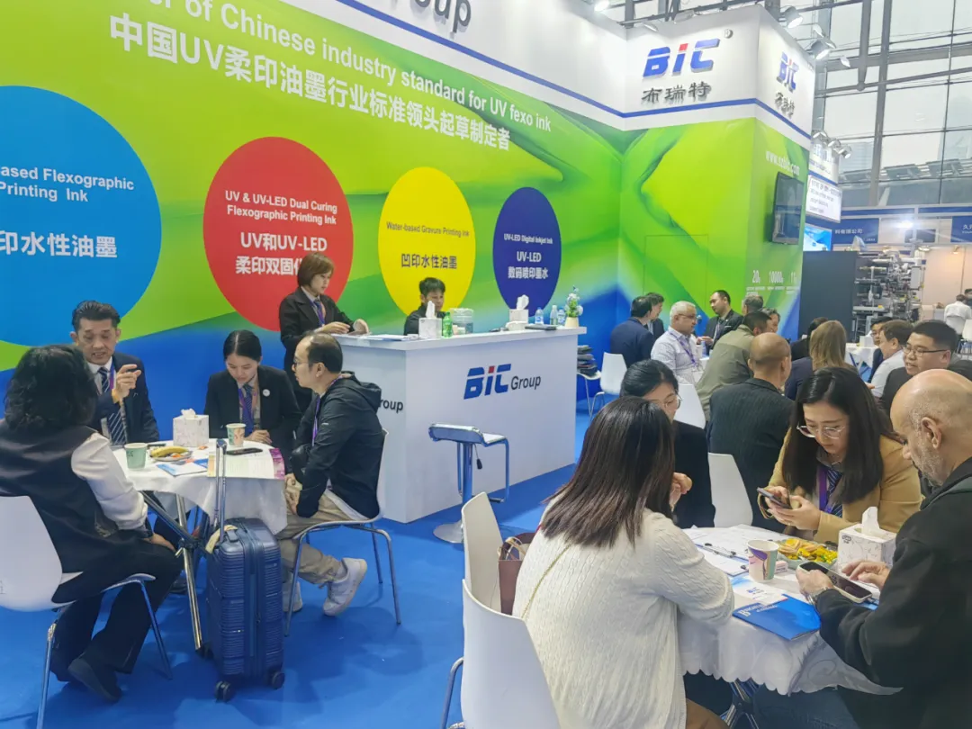 作为展会的重要参展商之一,布瑞特油墨集团(BIC Group)72平方米宽阔展位,全方位展示了其创新产品矩阵,包括UV和UV-LED柔印双固化油墨、UV-LED数码喷印墨水、柔印水性油墨以及凹印水性油墨等多款前沿产品,吸引了众多国内外观众和业内专业人士驻足咨询,现场气氛热烈,人气爆棚。充分彰显了布瑞特集团发展实力、在油墨领域的技术领先地位与行业影响力。