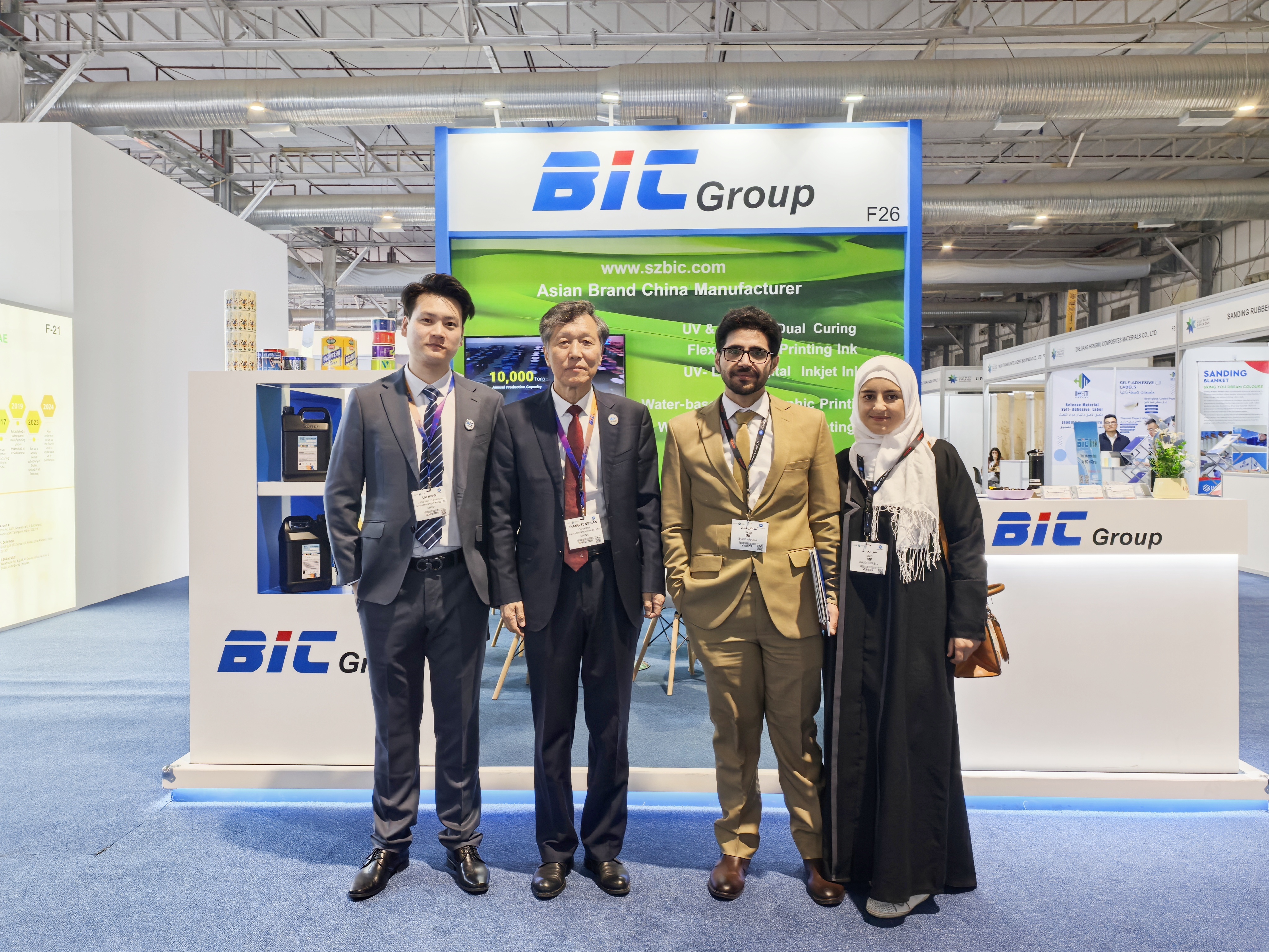 BIC Group 作为一家中国制造脱颖而出的亚洲品牌的高端印刷油墨专业制造商参加此次展会,向到展位的中东与海湾的客户和观众,全方位展现了“BIC布瑞特”品牌的产品和应用。BIC Group这次重点展示了在亚洲技术领先的UV&UV-LED双重固化柔印标签和烟包油墨、UV-LED数码喷墨、水性柔印即开彩票刮开墨和液体无菌包装油墨、水性凹印烟包、食品包装和扑克牌油墨。
