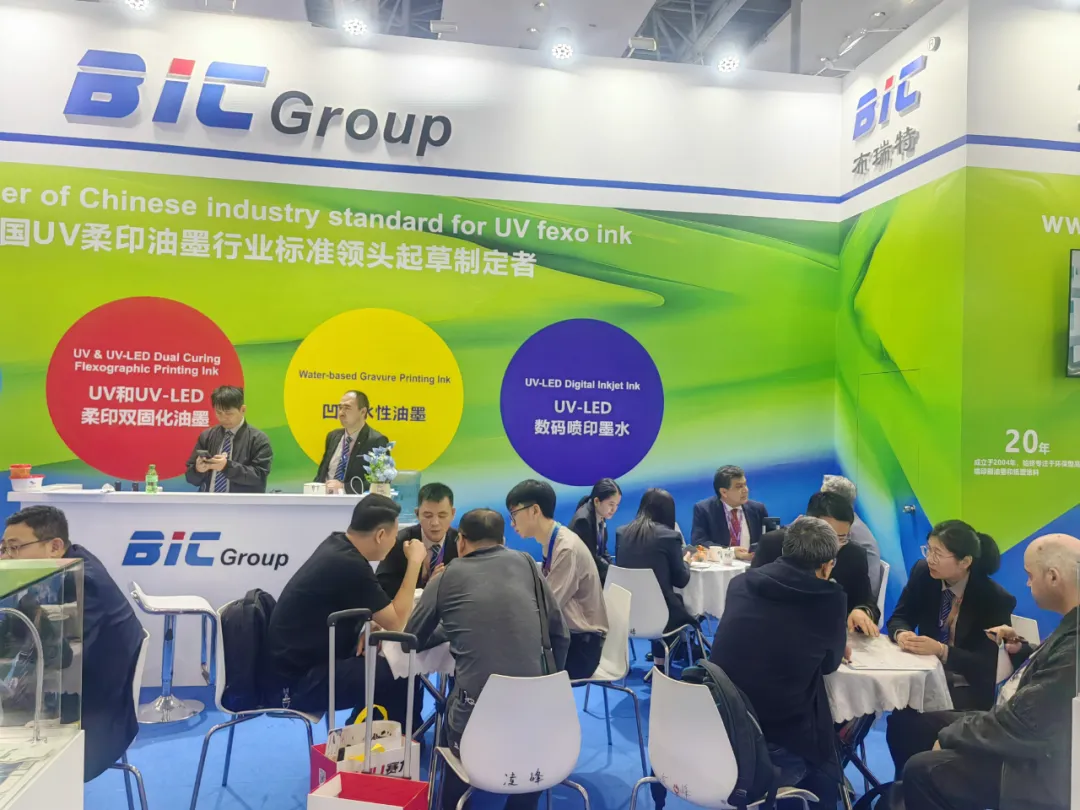 作为展会的重要参展商之一,布瑞特油墨集团(BIC Group)72平方米宽阔展位,全方位展示了其创新产品矩阵,包括UV和UV-LED柔印双固化油墨、UV-LED数码喷印墨水、柔印水性油墨以及凹印水性油墨等多款前沿产品,吸引了众多国内外观众和业内专业人士驻足咨询,现场气氛热烈,人气爆棚。充分彰显了布瑞特集团发展实力、在油墨领域的技术领先地位与行业影响力。