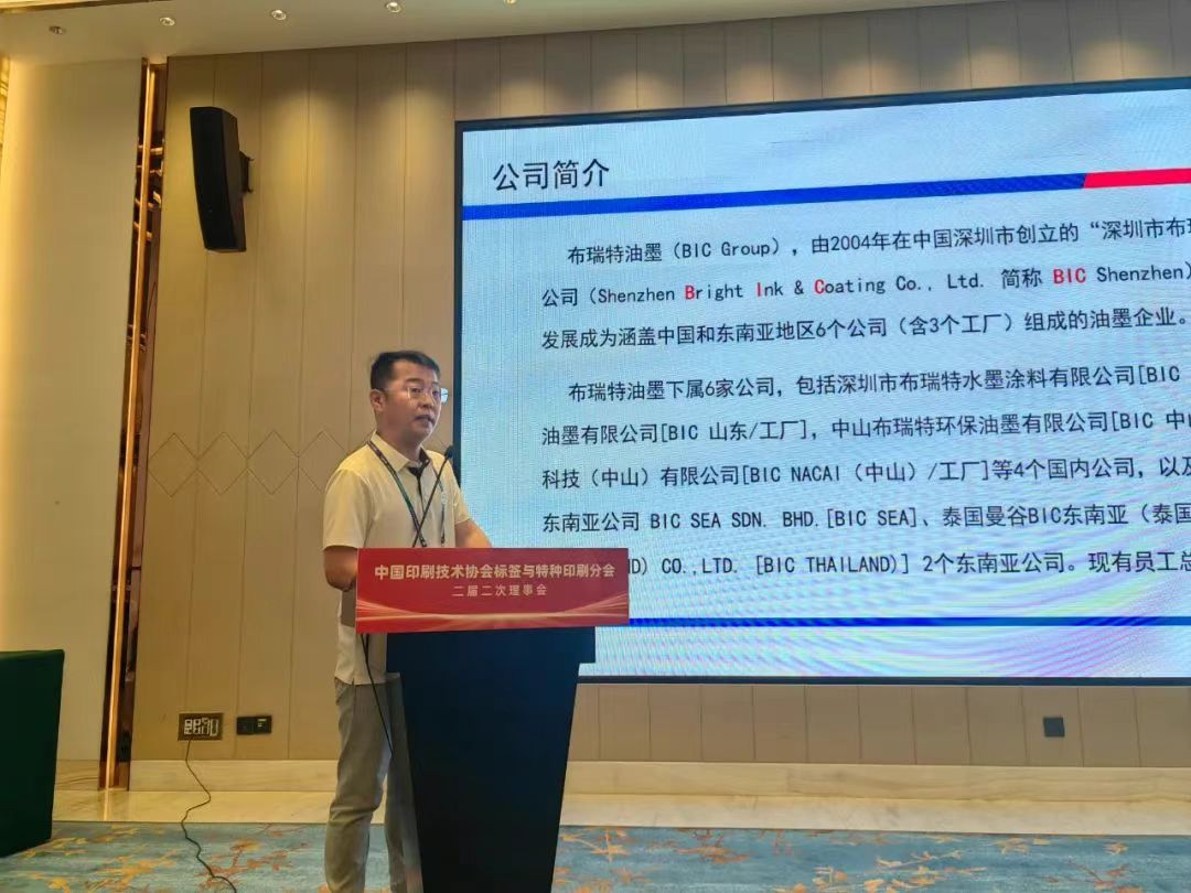 我司华东销售总监张迎雪以《布瑞特环保油墨新趋势》为主题,分享了布瑞特油墨的新品柔印UV低气味低迁移油墨、柔印UV高浓度高耐晒油墨、数码UV喷墨墨水、数码UV增效光油。针对标签行业推出的四款创新产品,旨在满足市场对环保、高耐久性、特殊效果及数字化印刷的日益增长的需求。这些新品将为标签印刷企业提供更高效、更安全、更具竞争力的解决方案,推动标签行业向绿色化、高端化、定制化方向发展。